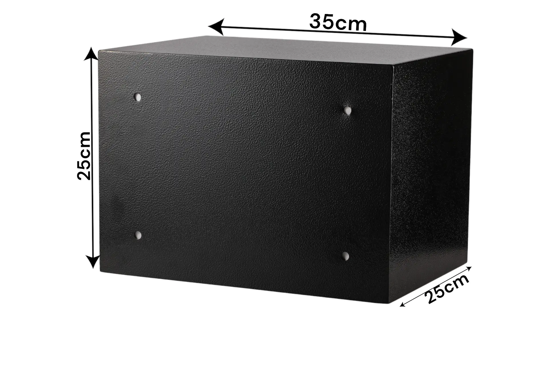 • Product Dimensions:  Exterior measures 350 x 250 x 250 millimeter (WxDxH); door thickness is approximately 3 mm